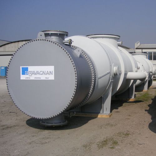 Ambas instalaciones de Ravagnan (Limena y Bottrighe) construyen intercambiadores de calor de coraza ytubo para la Industria Química, Petroquímica y del Gas y Aceite (siguiendo el estándar TEMA) y para plantas de producción de energía como recalentadores de agua de alimentación y condensadores.