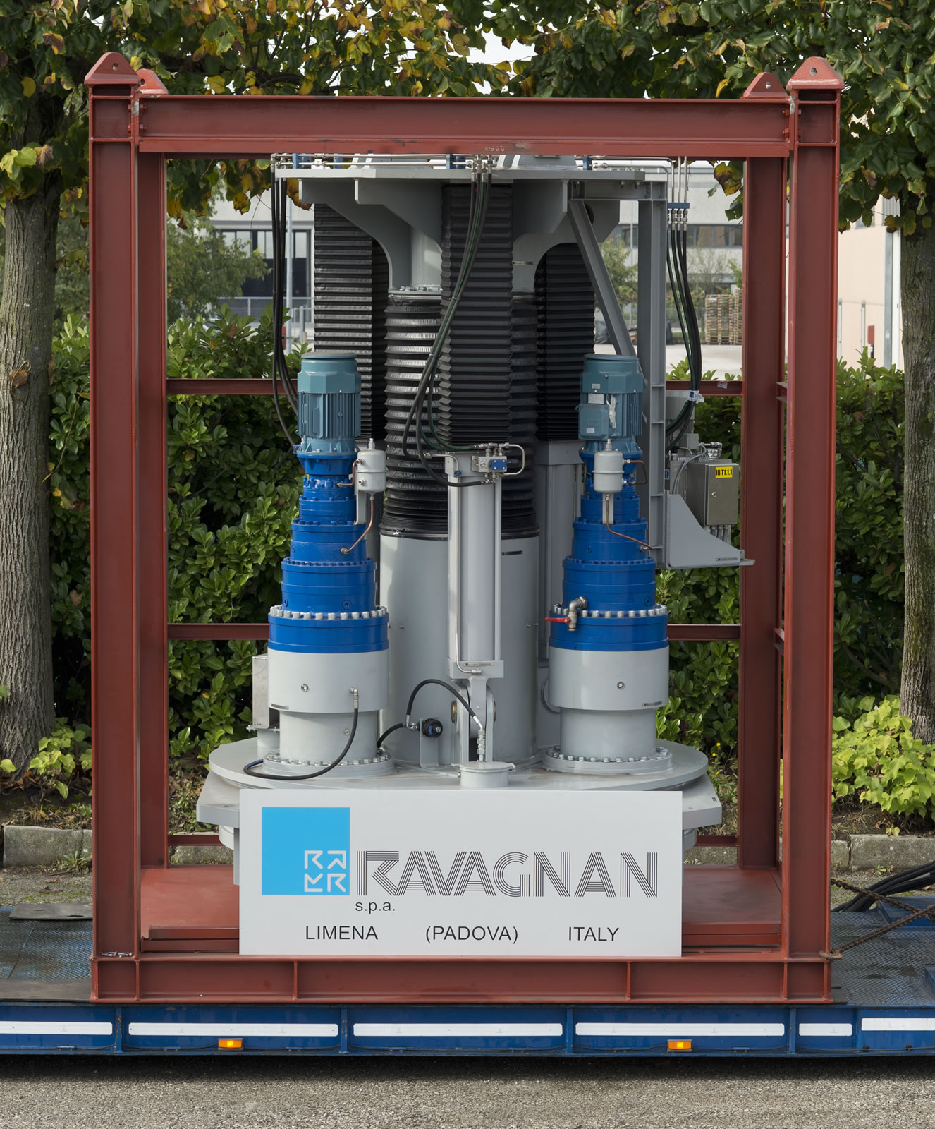 Ravagnan produces mechanical central handling units for tanks with diameters over 50 m for treating large flows of waste water (greater than 2000 m3/h) with a high particulate content. These plants are capable of removing up to 100 t/day of sludge produced and tolerating torque values greater than 400 kNm.